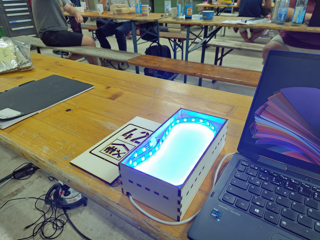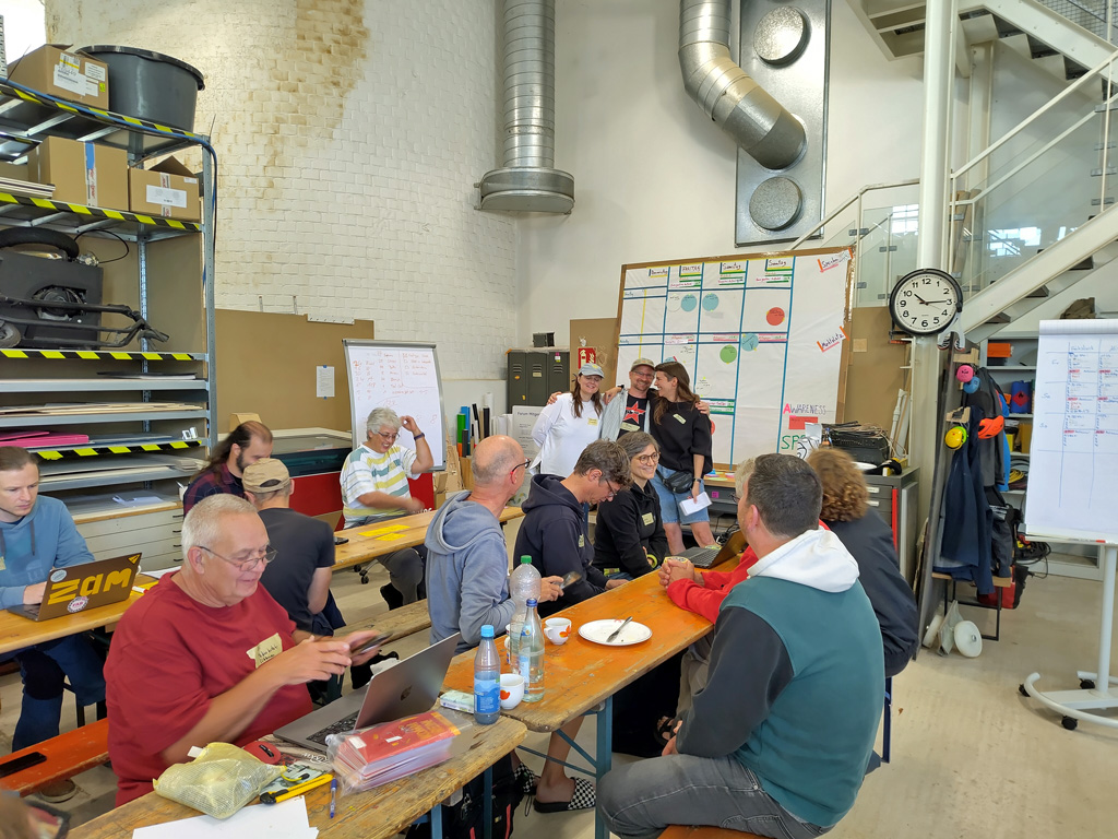 Wir plaudern über die typischen Werkstatt-Benutzer, über das Kursangebot und über zukünftige Pläne. Dabei erfahre ich, dass künftig auch eine Shaper Origin Fräse für die Werkstatt beschafft werden soll. Hier könnten sich also noch Gemeinsamkeiten mit den Aktivitäten bei Garage42 ergeben.