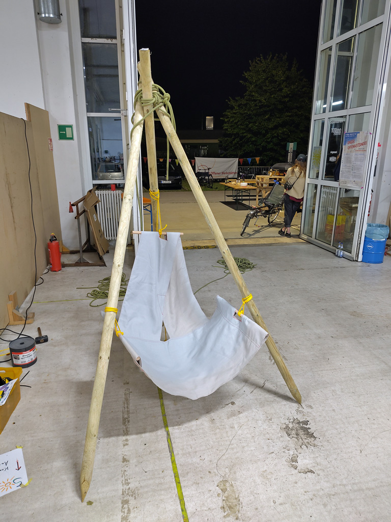 Ich werde am Eingang von Basti begrüßt, der gerade auf eine Holzlieferung wartet. Basti führt mich durch die Räume und gibt mir einen Überblick was das Teamwerk so zu bieten hat.