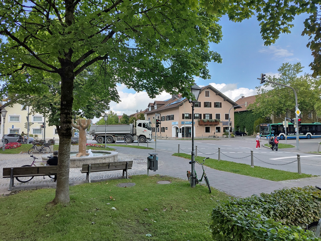 Für den Münchner ist die Busreise eine interessante Erfahrung – recht schnell wird das Umfeld ländlicher, und spätestens in der Ortsmitte Aschheim mit den schönen Bauernhöfen, Gasthäusern und einer Brennerei fühlt man sich „aufs Land“ versetzt.