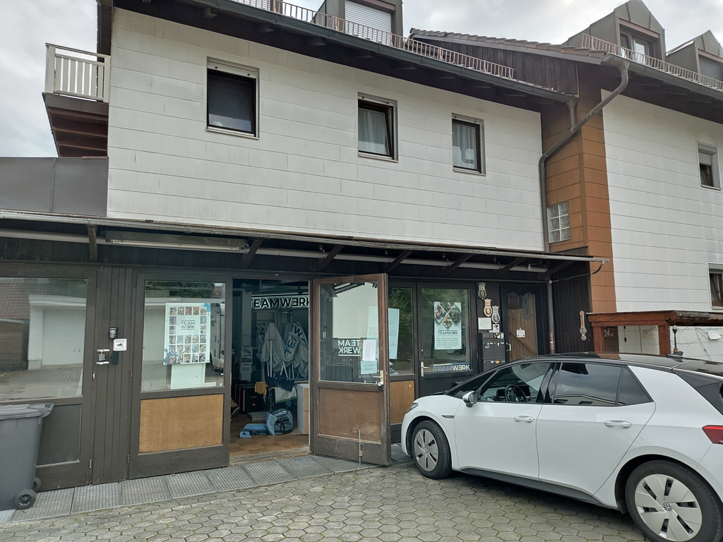 Doch da ist auch schon das Teamwerk: im hinteren Teil eines Wohngebäudes im Erdgeschoss geht es hinein in die Werkstatt.